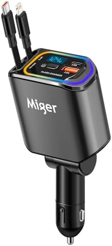 Miger Retractable Car Charger, 100W Fast Car iPhone Charger 4 in 1 Char
